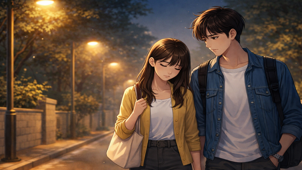 나란히 걷는 발걸음 소리만 조용이 울리고